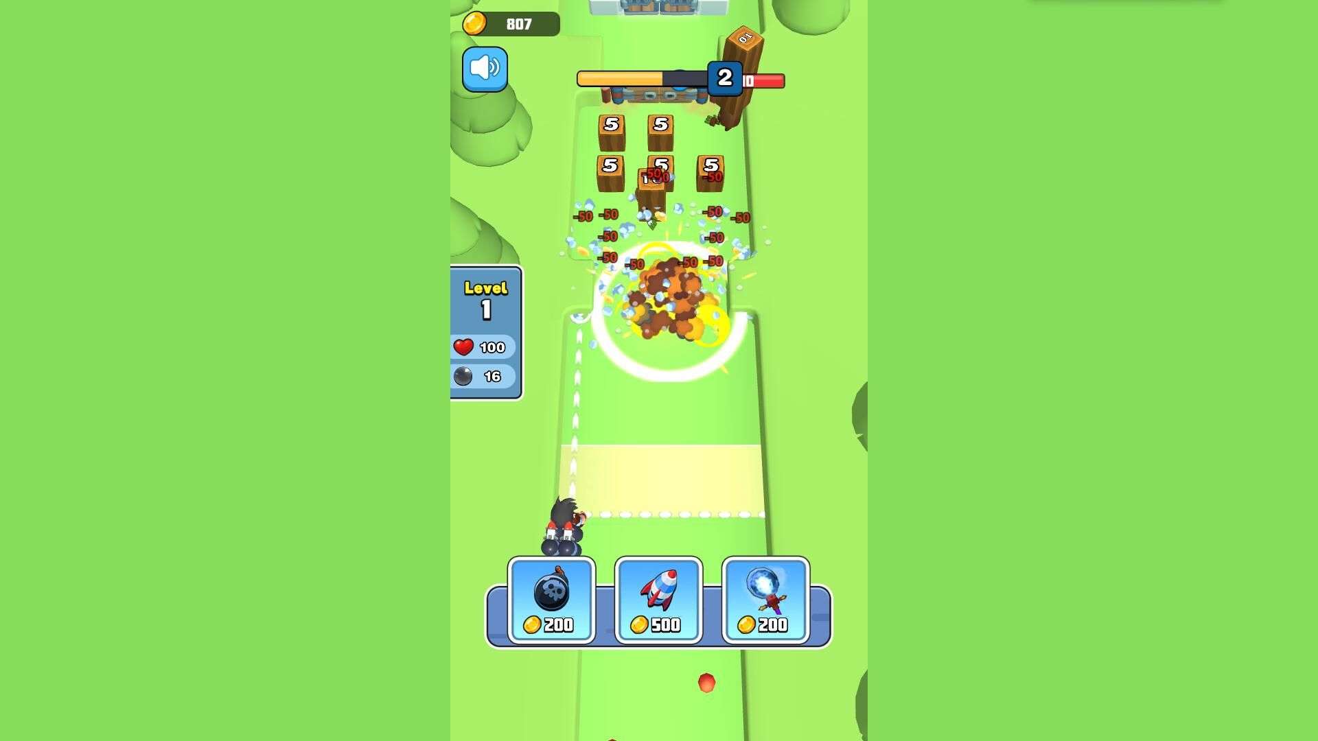 2. Activate bombs and rockets to clear obstacles
